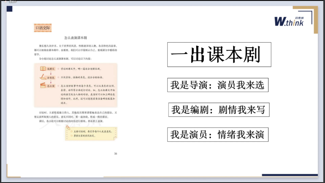 这位老师安排了一项有趣的作业,要选择一个导演、一个演员,以及文中的主角。他设计这个问题是为了让学生更好地体悟语文的核心——小说中人物形象的塑造。通过选演员的活动,他引导学生来思考班上谁适合扮演主角,并给出理由。这个问题的设计旨在让学生通过有趣的活动深入体验小说人物形象的特点。接下来,“我”负责编写剧情。因为其中有一场戏是主角拿着一把刀剑与国王对话。历史上,是不允许平民持刀剑面见君主的,但小说中却这样写道。作为编剧,“我”需要决定保留这个情节还是恢复历史真相。这个情景的设计其实是在探讨虚构小说和真实历史之间的区别。最后,“我”会扮演演员的角色,需要表演剧本中一些关键场景中人物内心世界的描写。通过写出人物内心的想法和情感,学生能更好地体验人物的情感。虽然这个作业以课本剧为契机,但每一个作业和评价都指向语文的核心要素,从而培养学生对于语文的理解能力。不论是新课标还是其他考试和作业,老师和整个教育系统都在努力调整我们的考评方式。包括一二年级的无纸化全国测评。以前,我们常常说看指挥棒怎么指,老师们就按照要求教学。在过去的指挥棒要求下,老师们认为很多教学都没有用处,因为考试不涉及。但是我觉得通过刚刚发现的从顶层课标评价设计要求到各个教育主管部门提出的建议,再到学校和老师个人课堂上的评价方式改革,我们可以看到指挥棒正在发生变化。虽然变化的速度可能不是很快,但变化的方向是明确的,最终目标是让学生在真实情境中解决复杂问题,并在实践中体验和运用语文,使语文成为生活中不仅仅存在于课本上的一门学科。 所以我认为,无论是为教师个人成长还是学生培养终身能力,都必须让语文变得更实用。要么在风向已经确定时率先向前走,要么在指挥棒转向时被迫跟上。最终,我们必须让语文变得更实用。