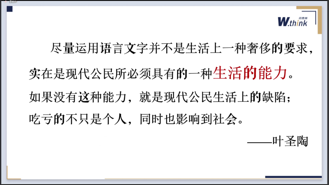 以叶圣陶先生的话作为结尾:“尽量运用语言文字并不是生活上一种奢侈的要求,实在是现代公民所必须具有的一种生活的能力。如果没有这种能力,就是现代公民生活上的缺陷;吃亏的不只是个人,同时也影响到社会”。因此,让实用性阅读和交流成为每位老师在活动设计和课堂上努力的方向至关重要。在思辨的大模型构建下,我们将能更好地推进实用性阅读和文本,以及其他学习任务和课程。希望我们能像星光和微光一样,将我们的火炬举得更高,照亮更多的地方,并且每个人都努力做出贡献,从而真正改变教育生态。感谢今晚所有老师的聆听! 重庆市沙坪坝区第一实验小学校教导主任